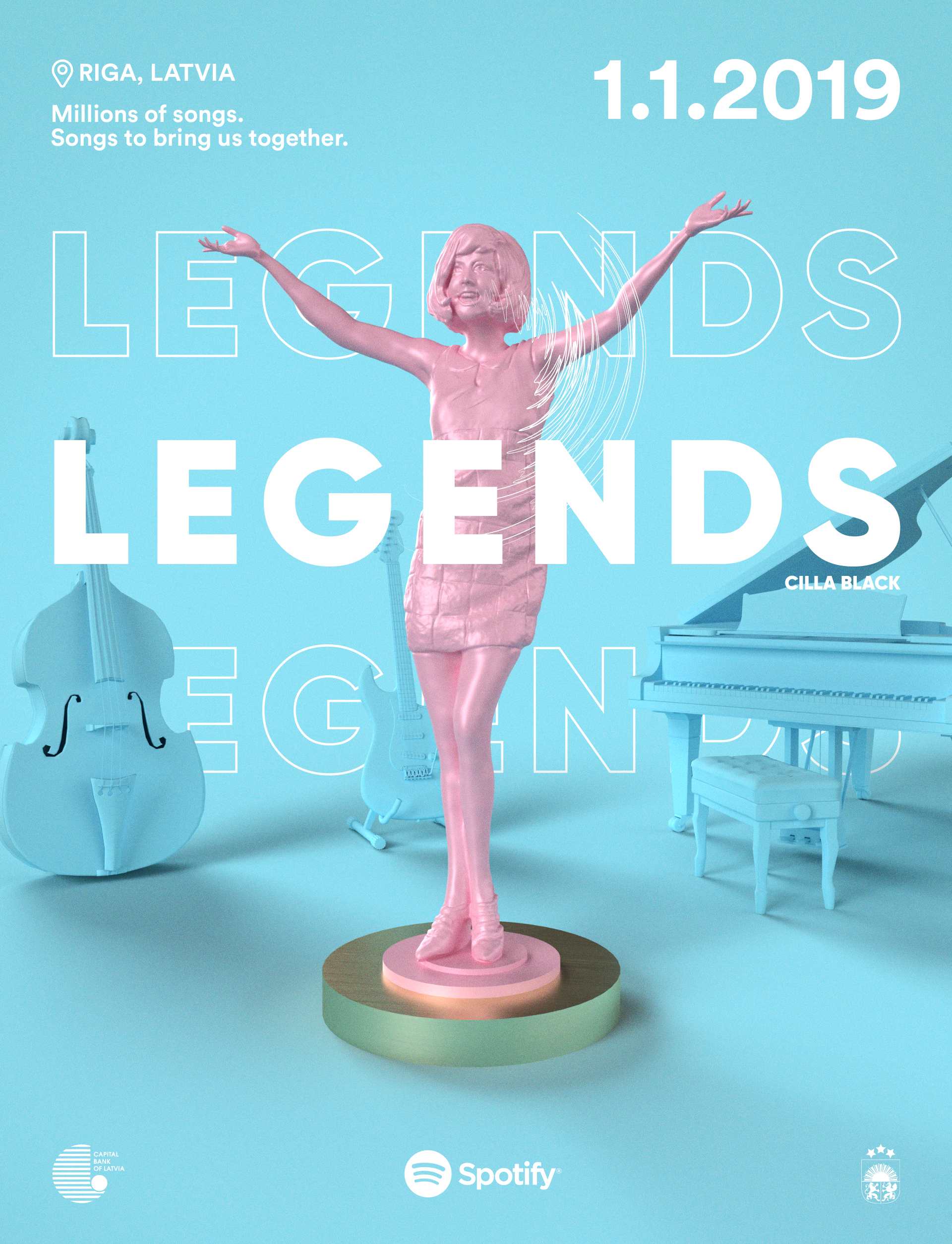 The posters were meticulously created through a combination of 3D printing, photography, and painting, all handcrafted to convey our deep passion for music. Starting from January 2019, people across all of Latvia could finally enjoy their favorite music through Spotify.