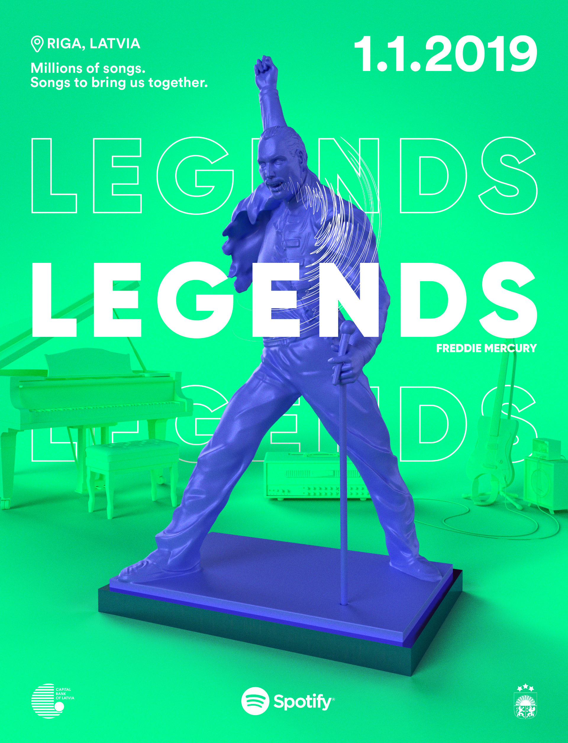 The ‘Legends’ campaign was devised by tracking the six most-listened-to artists among Latvians, including Freddie Mercury, Amy Winehouse, Cilla Black, Elvis Presley, Bob Marley, and David Bowie, among others.